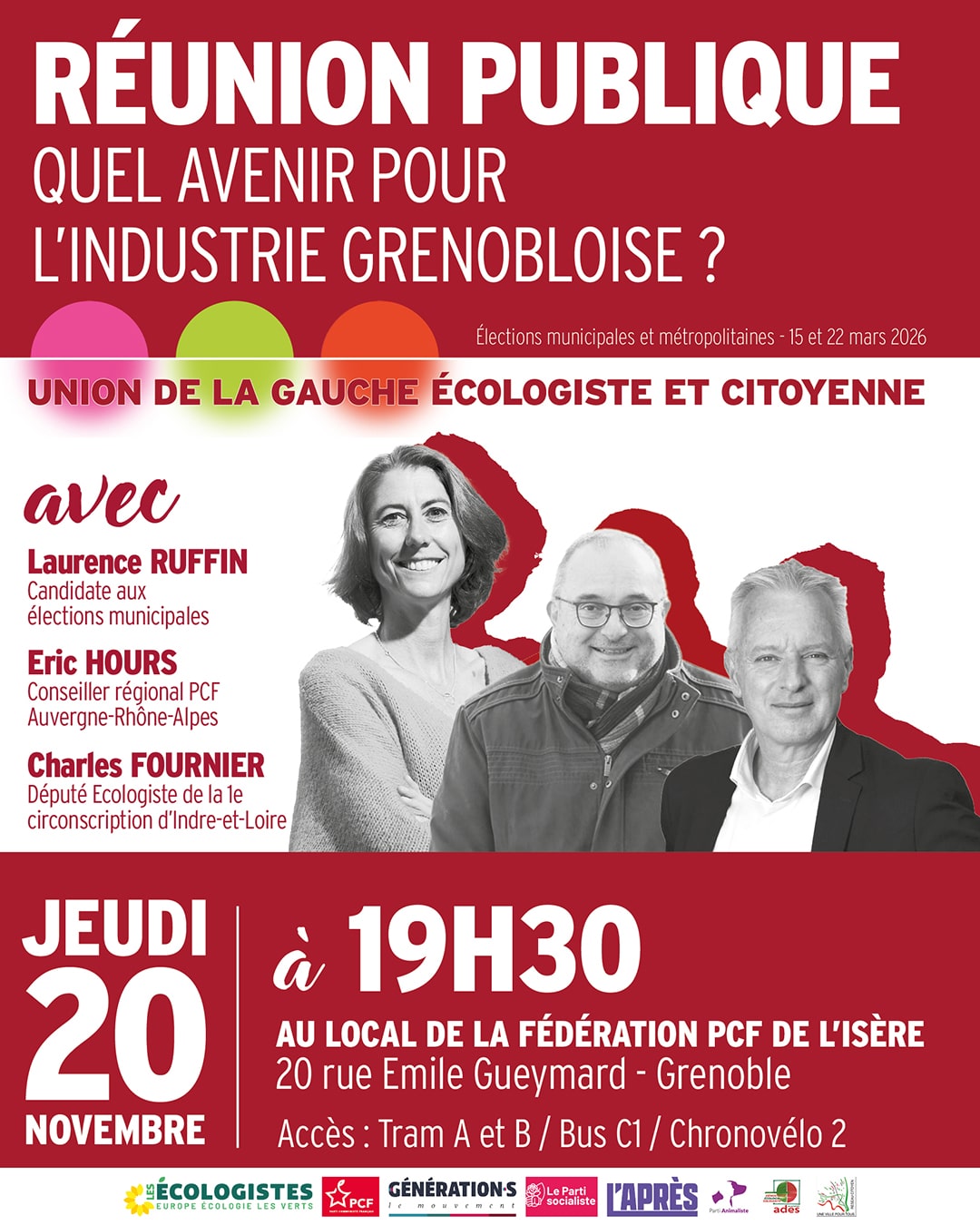 Évènements 20 Novembre 2025 Quel avenir pour l’industrie grenobloise ? Rendez-vous à 19h30, le jeudi 20 novembre